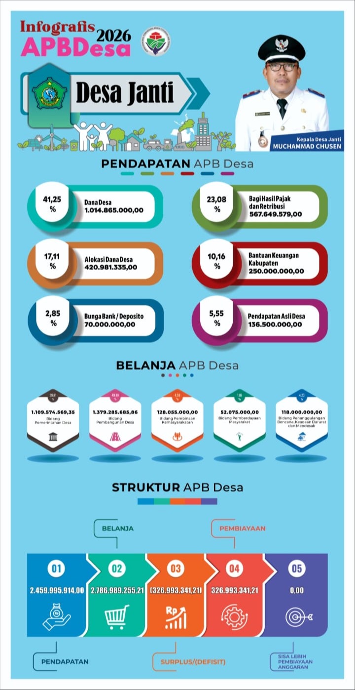 Pemerintah Desa Janti - Pemerintah Desa Janti bersama Badan Permusyawaratan Desa (BPD) telah melaksanakan Musyawarah Penetapan Anggaran Pendapatan dan Belanja Desa (APB Desa) pada tanggal 18 Desember 2025. Kegiatan tersebut berlangsung dengan tertib dan lancar.